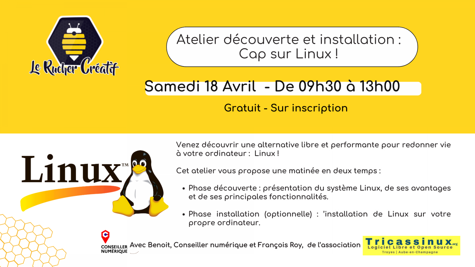 Apertura Tarifas Prestaciones Volver a la lista Apertura El 18 abril 2026DíaHorariosSábado 09h30 à 13h00 Tarifas Gratuit Prestaciones Tipos Acompañamiento Iniciación / descubrimiento Actividades culturales Informática