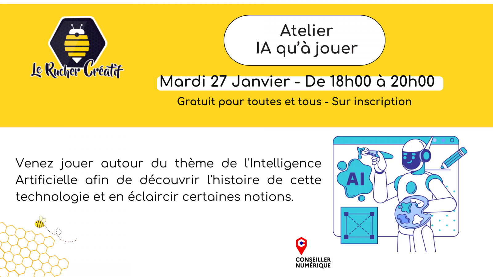 Quiénes somos Apertura Tarifas Prestaciones Volver a la lista Quiénes somos Idiomas Francés Apertura El 27 enero 2026DíaHorariosMartes 18h00 à 20h00 Tarifas Gratuit Prestaciones Tipos Acompañamiento Iniciación / descubrimiento Actividades culturales Tecnología / Electrónica