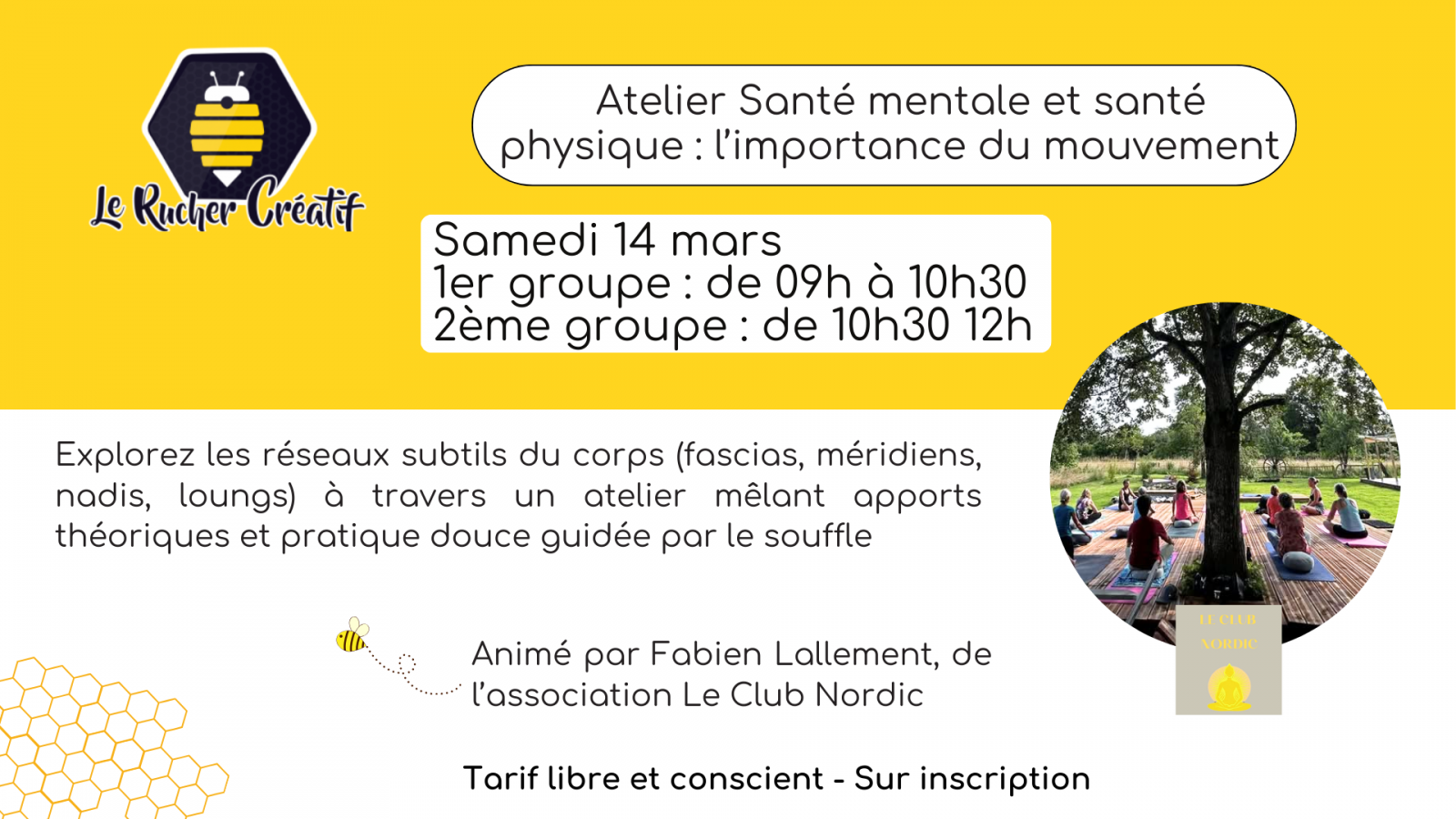 Apertura Tarifas Prestaciones Volver a la lista Apertura El 14 marzo 2026DíaHorariosSábado 09h00 à 10h30 y 10h30 à 12h00 Tarifas Gratuit Prestaciones Tipos Acompañamiento Iniciación / descubrimiento Actividades culturales Desarrollo personal