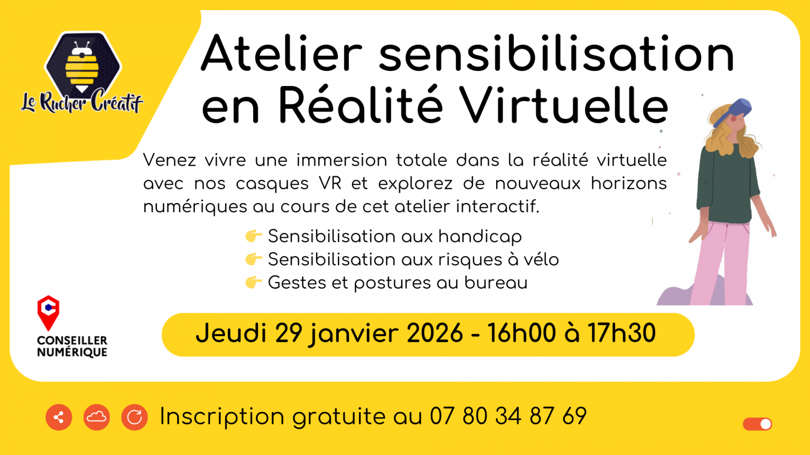 Apertura Tarifas Prestaciones Volver a la lista Apertura El 29 enero 2026DíaHorariosJueves 16h00 à 17h30 Tarifas Gratuit Prestaciones Tipos Acompañamiento Iniciación / descubrimiento Actividades culturales Realidad virtual