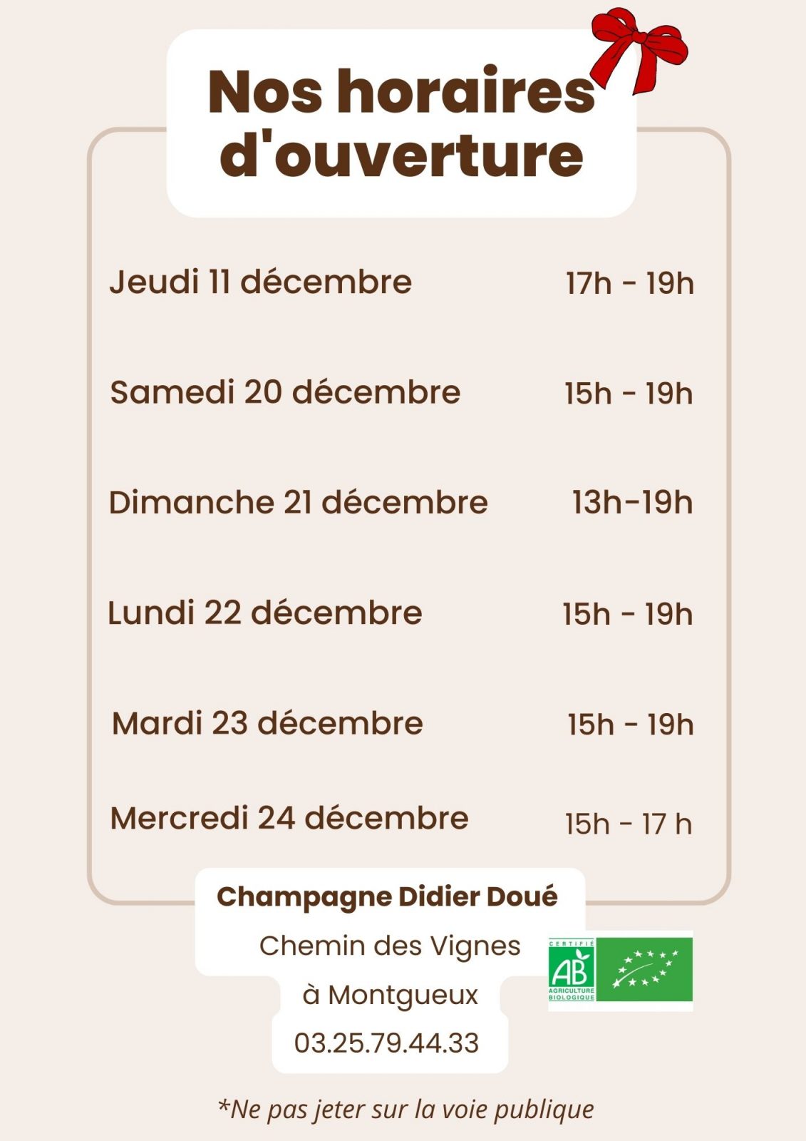 | Domingo | 13h00 à 19h00 |
