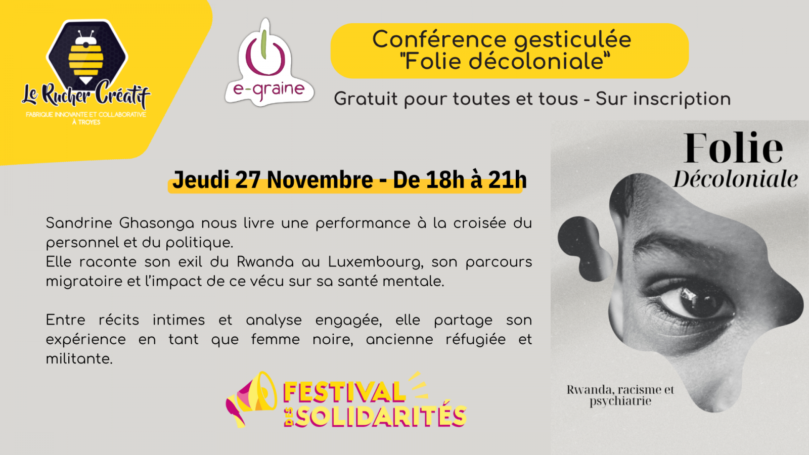 Los 27 nov 2025 17 rue Colonel Driant, 10000 Troyes Consultar los horarios Fecha Tarifas Ubicación Cerca Volver a la lista Fecha El 27 noviembre 2025DíaHorariosJueves 18h00 à 21h00 Tarifas Gratuit Medios de pago Metálico Tarjeta bancaria/crédito Pago en línea Pago sin contacto Ubicación