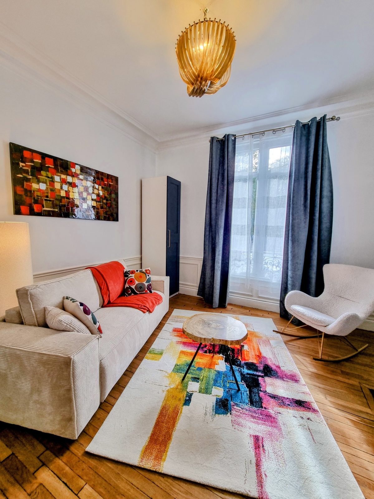 A dos pasos de las pintorescas callejuelas y de la estación, este espacioso piso de estilo haussmaniano le ofrece un momento para relajarse y contemplar el cielo desde su "jardín de invierno". Este marco de ensueño es una sutil mezcla del refinamiento de antaño - parqué patinado, molduras de época, chimeneas de mármol - y la elegancia de sus ornamentos de colores vibrantes.