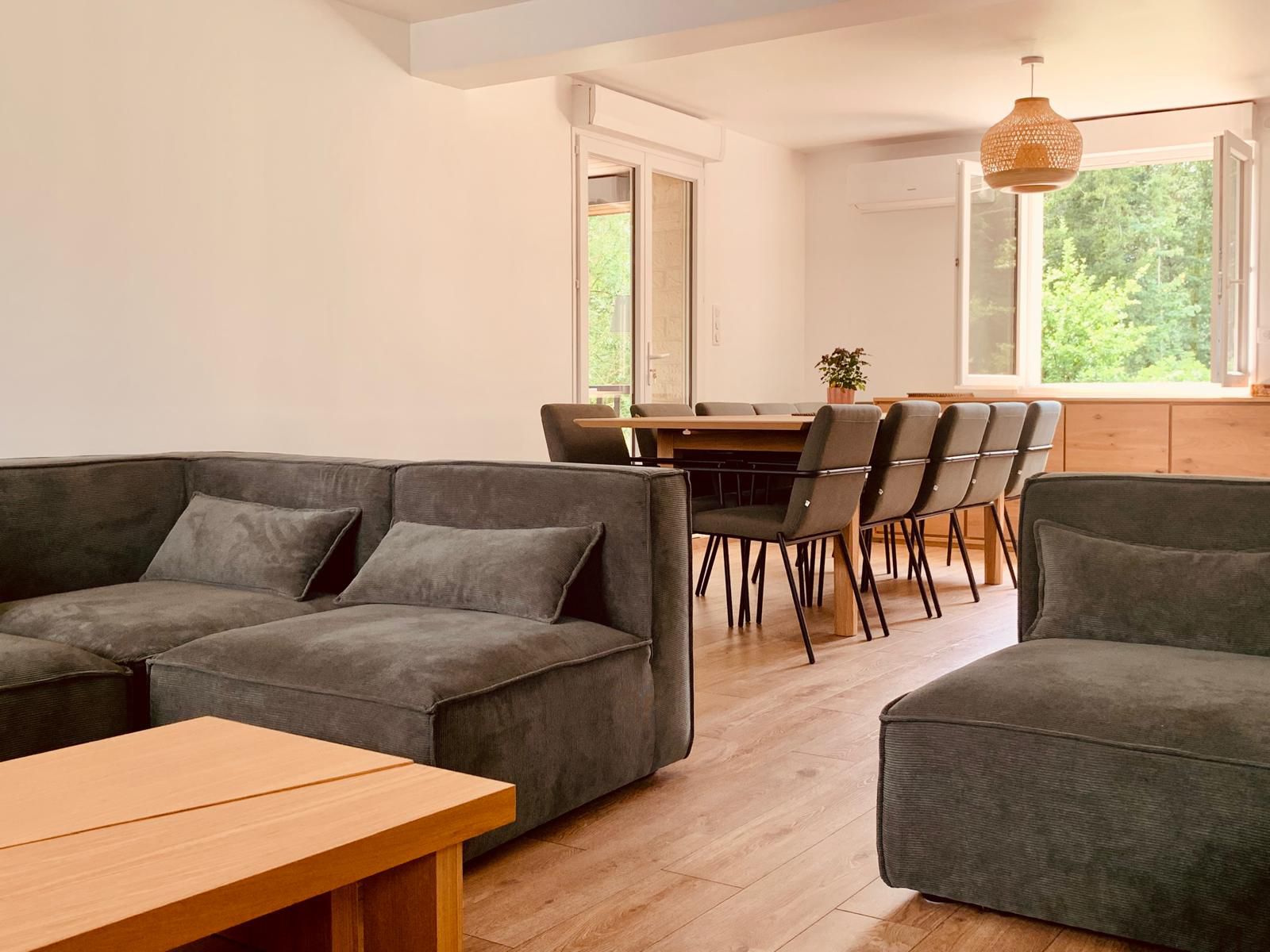 La Maison des Viennes puede alojar hasta 15 personas en un ambiente cálido y acogedor, con 9 habitaciones, un amplio salón y jardín. Ideal para vacaciones en familia o seminarios, en la tranquilidad de Saint-André-les-Vergers, con servicios a petición.