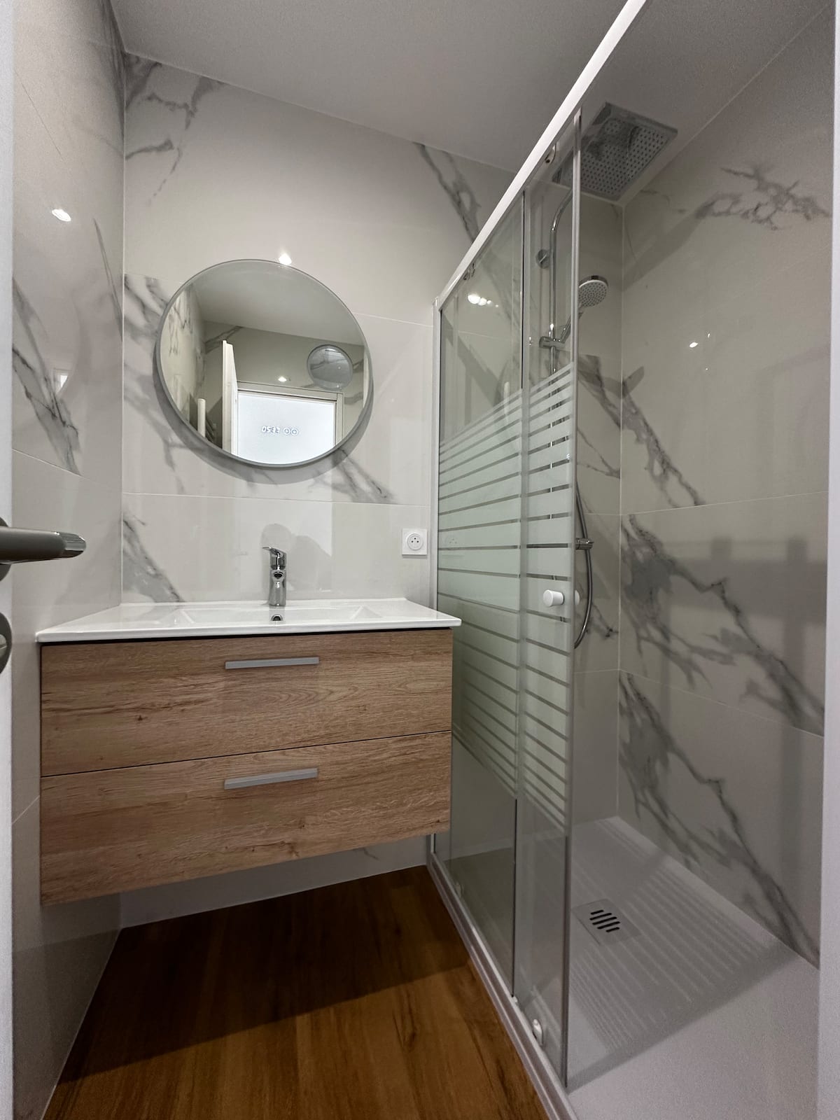 > cuarto de baño con ducha grande