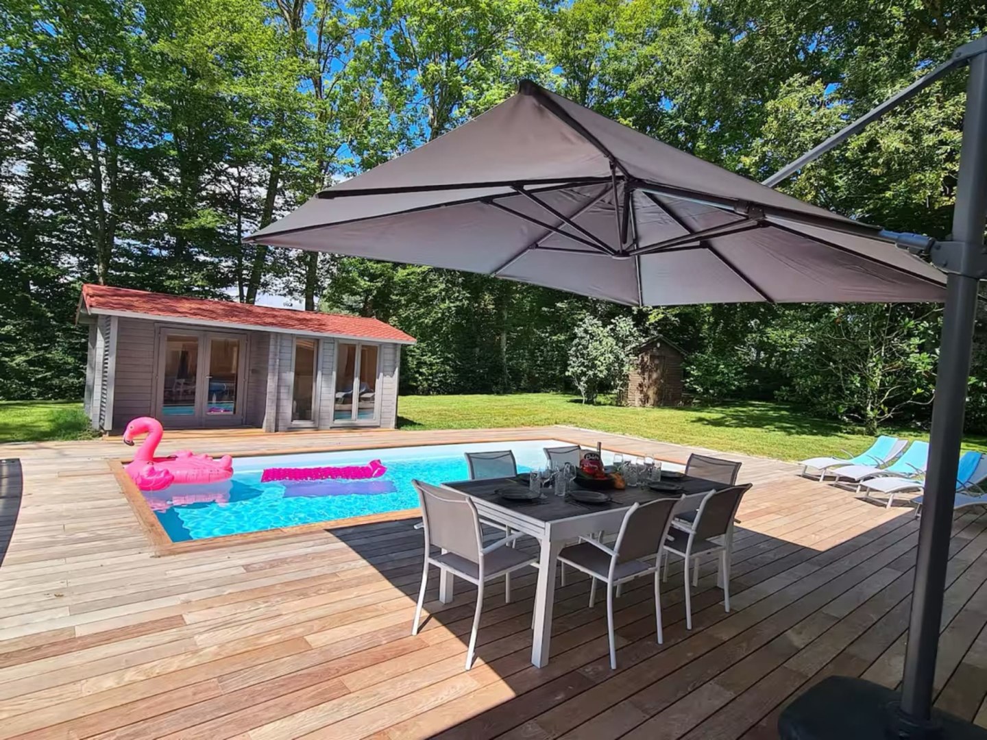 > Piscina privada climatizada (8×4 m) con playa subacuática, cubierta/abierta según el tiempo.