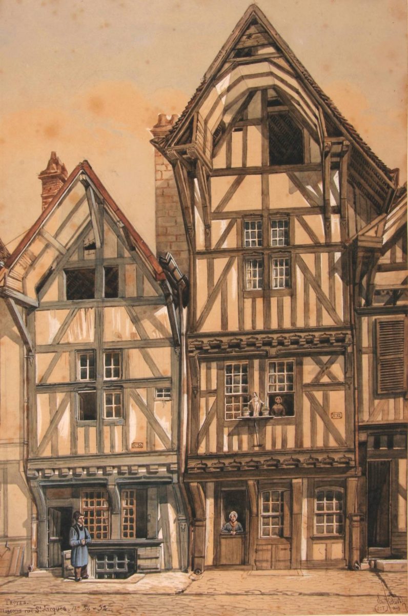 De la misma manera, los comerciantes también reconocerían la silueta de las casas de Troyes que fueron reconstruidas en el siglo XVI, tal y como eran, con sus tejados con voladizos y sus ventanas con parteluz, sin olvidar los entramados de madera y adobe, que eran los materiales de construcción más utilizados en la arquitectura medieval de la región de Champagne en esta época.