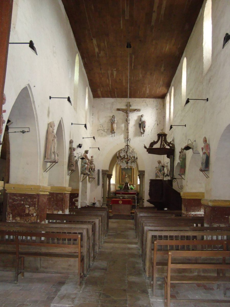 Sus vidrieras datan del siglo XVI, al igual que buena parte de las vidrieras de la región, y se declararon monumentos históricos en 1913. La simplicidad de sus líneas, sus pequeñas ventanas en plena cimbra y su gran pórtico le proporcionan un gran encanto. Al igual que su órgano del siglo XIX, que fue declarado monumento histórico en su categoría de objetos en 1980.